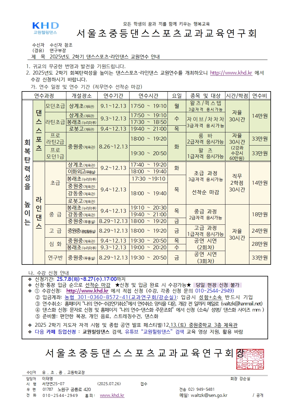 첨부파일 2: 1753824728_2_2025년 2학기 댄스스포츠 라인댄스 교원 연수 안내수정.hwp