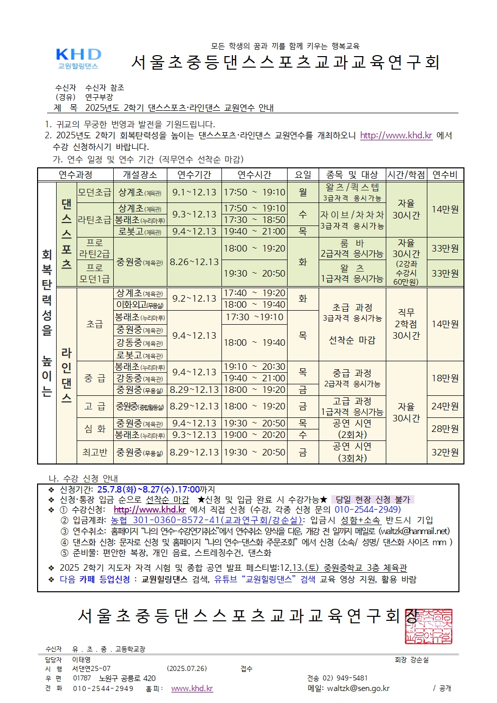 ❖ ① 수강신청: http://www.khd.kr 에서 직접 신청 (수강, 각종 신청 문의 010-2544-2949)